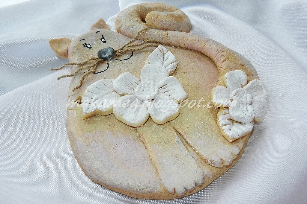Kiedy jakiś czas temu trafiałam na blog Natalii - bardzo zdolnej i pomysłowej dziewczyny: zobaczyłam wykonanego przez Nią kotka. Postanowiłam go również wykonać. I nie tylko się zainspirować ale zrobić go dokładnie takiego samego aby wisiał u mnie na ścianie. I jak Wam się podoba?